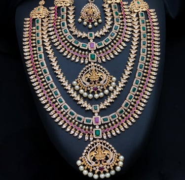 Our jewellery is crafted from high-quality metals and gemstones for durability and elegance.